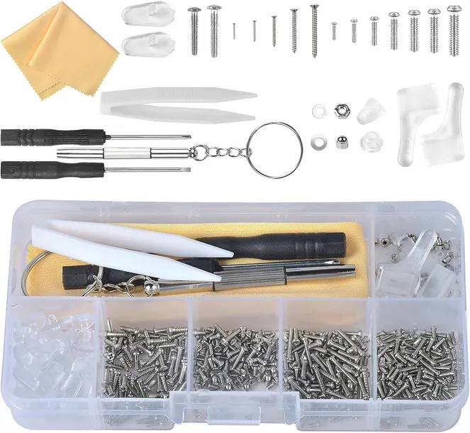 ✅ Nasz zestaw został zaprojektowany z myślą o wygodzie użytkowania. Rozmiary śrubek są nadrukowane na małym śrubokręcie, a śrubki umieszczone są w różnych przegrodach pudełka, co zapobiega pomyłkom. Dodatkowo, torebka do przechowywania okularów umożliwia zabranie ich ze sobą do pracy, szkoły czy na randkę.