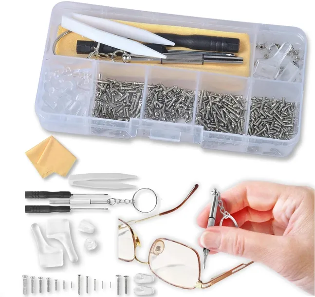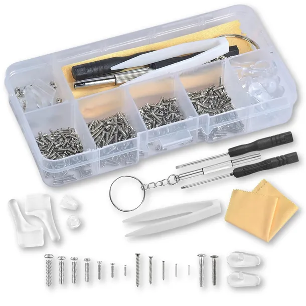 Czy zdarzyło Ci się zgubić nosek z okularów lub poluzować malutką śrubkę? Teraz możesz szybko i łatwo naprawić swoje okulary w domowym zaciszu! Nasz wszechstronny zestaw do naprawy okularów zawiera wszystko, czego potrzebujesz, aby wymienić śrubki i noski, bez potrzeby wizyty u optyka.