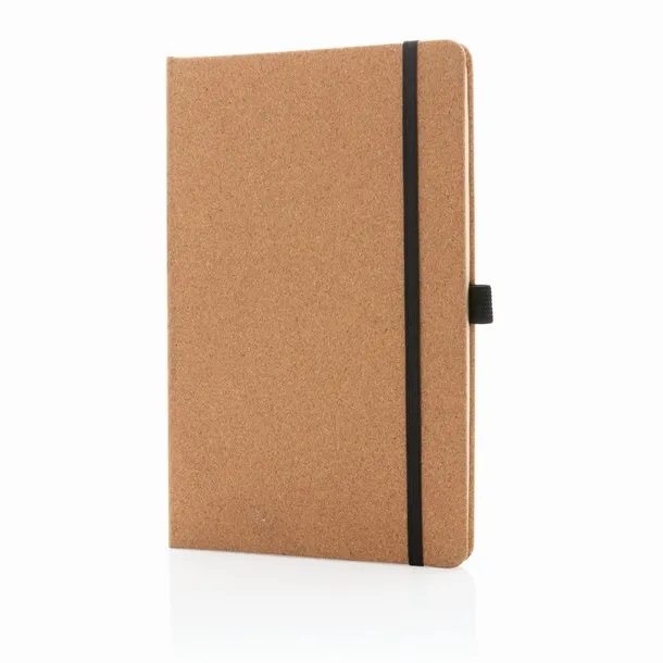 Notatnik A5 (96 kremowych kartek 70 g/m2 w linie), twarda, korkowa okładka, pętla na przybory do pisania, elastyczna opaska do zamykania