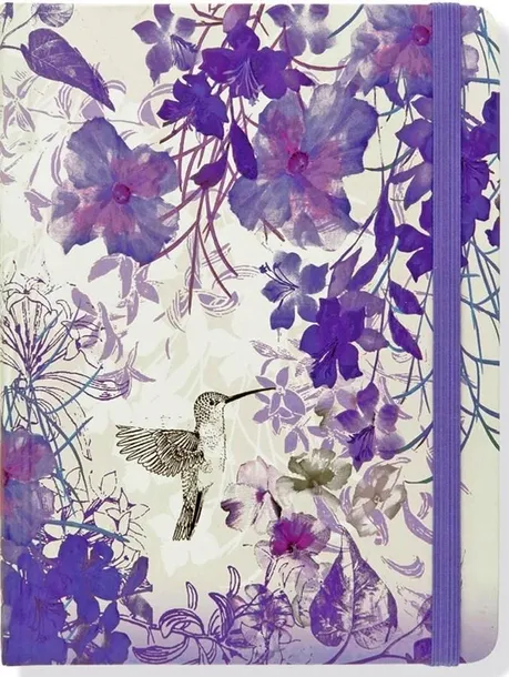 Posiada oryginalną okładkę z wytłaczanymi wzorami i tylną kopertą na drobne notatki. Zamykany jest na gumkę, 160 stron, linia.