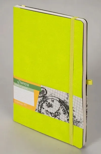 Pierwsza i ostatnia strona notesu wykonana z ozdobnego papieru w kolorze ekri