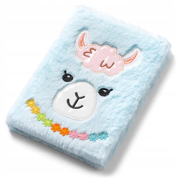 - piękny notatnik z kolorową lamą w miękkim futerku