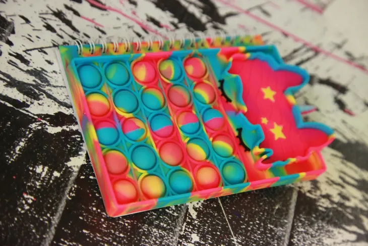Okładka notesu w formie zabawki sensorycznej, która pomoże się odprężyć i zrelaksować.