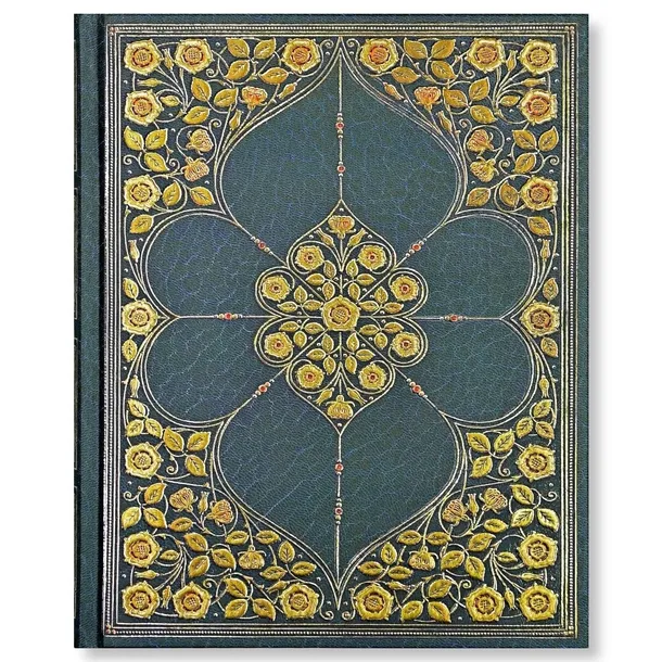Okładka inspirowana oprawą poematu „Pani na Shalott" lorda Alfreda Tennysona, stworzona przez Sangorski and Sutcliffe.