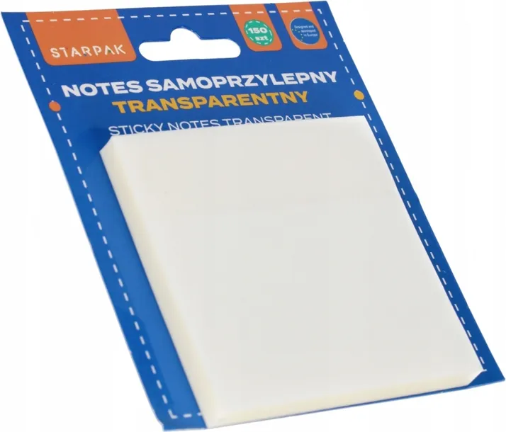 Zalety produktu: Notes karteczek samoprzylepnych transparentnych STARPAK. Posiada trwały klej który sprawi, że karteczki mogą wisieć na swoim miejscu przez wiele miesięcy. Klej nie pozostawia śladów. Odpowiedni kolor karteczek to kompromis między jaskrawością a komfortem dla oka. Zapoznaj się również z innymi produktami Starpak dla biura W ryzie znajduję się 150 karteczek transparentnych 7,5 cm, zapakowanych na blistrze z euro zawieszką w folii. Produkt przeznaczony dla dzieci w wieku: 3 . Wymiary produktu w opakowaniu wys.x szer.x gł. cm 12x10x1. Waga produktu w opakowaniu kg 0,07kg..Pakowany w folię.Pakowanie zbiorcze iner 24szt. Karton 48szt.