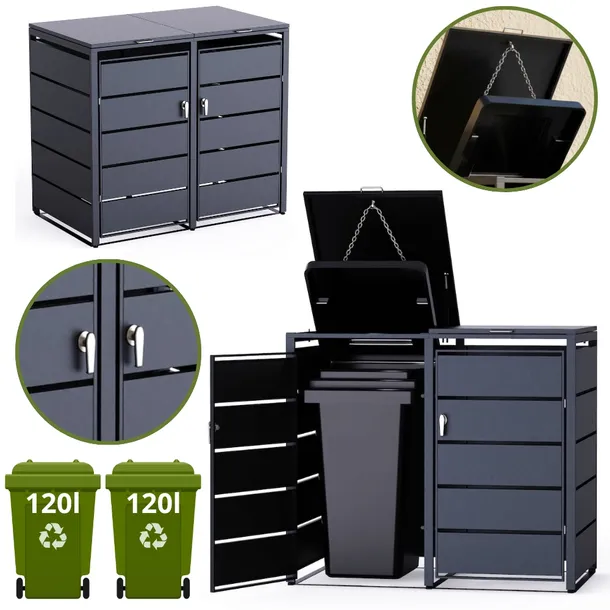 ✅ Pojemność: Obudowa została zaprojektowana specjalnie dla dwóch standardowych pojemników na odpady o pojemności 120L.