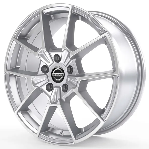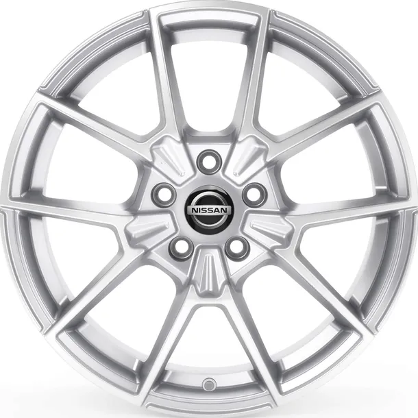 Zestaw zawiera felgi aluminiowe, pierścień centrujący oraz dekielki z logo Nissan