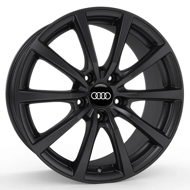 Zestaw zawiera 4 felgi aluminiowe oraz dekielki z logo AUDI