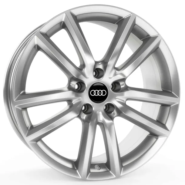 Zestaw zawiera 4 felgi aluminiowe oraz dekielki z logo AUDI