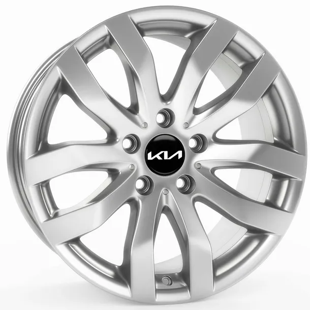 Zestaw zawiera 4 felgi aluminiowe oraz dekielki z logo KIA