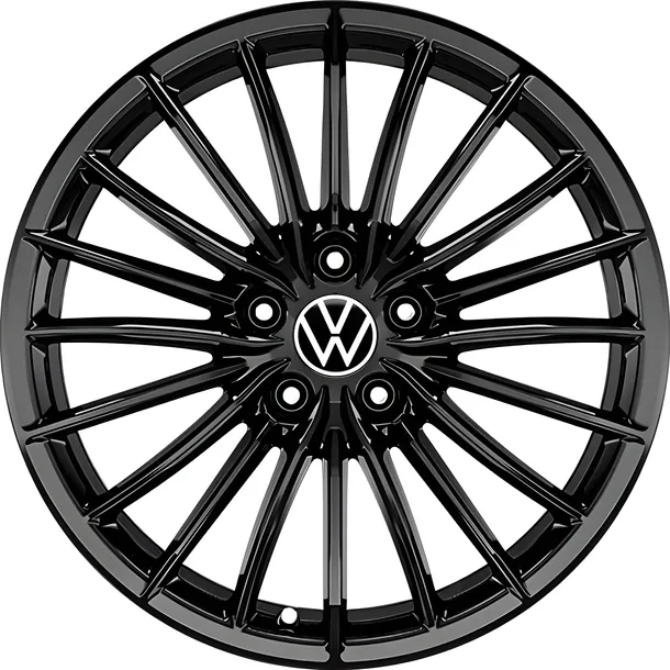 Zestaw zawiera 4 felgi aluminiowe oraz dekielki z logo VOLKSWAGEN