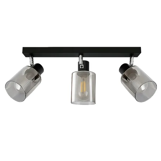 Lampa sufitowa LEDLUX 3xE27 – nowoczesny design z czarnym wykończeniem, przydymionym szkłem i regulowanymi kloszami | Idealna do wnętrz loftowych i nowoczesnych