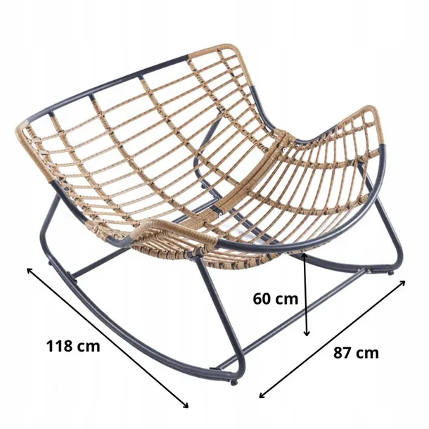 - Zawartość zestawu: fotel bujany, podnóżek, komplet poduszek, akcesoria montażowe
