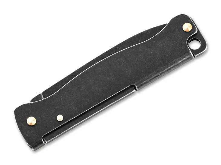 Stal klingi 12C27, długość całkowita 94 mm, długość klingi 42 mm, grubość klingi 1.2 mm, waga 11 g, rękojeść Stal nierdzewna, blokada Slipjoint