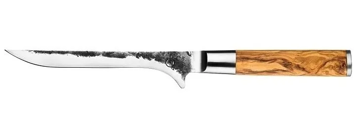 Ostrze tego noża do wykrawania kości wyróżnia się niesamowicie cienkim ostrzem o grubości 2 mm, co pozwala na precyzyjne oddzielanie mięsa od kości. Wykonane z wysokiej jakości stali 440C ostrza utrzymują swoją ostrość przez długi czas. Rękojeść noża została wykonana z pięknego drewna oliwnego, co nadaje mu wyjątkowy charakter i estetykę.
