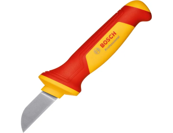 Nóż do cięcia przewodów VDE Bosch Professional posiada izolację z elastomeru termoplastycznego (TPE), dzięki czemu można przecinać przewody elektryczne nawet w razie przypadkowego kontaktu z elementami pod napięciem.