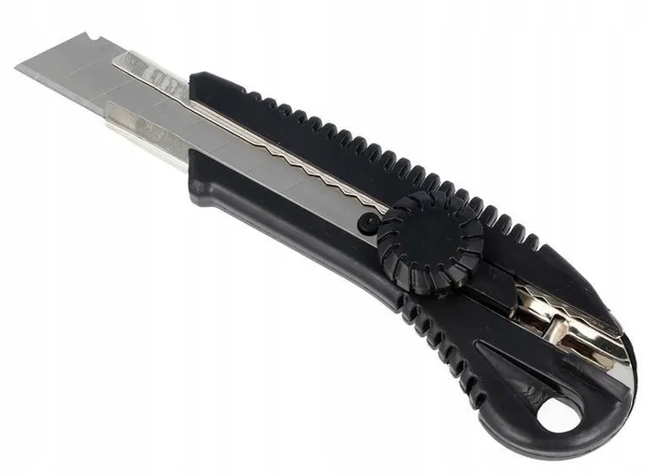 - Skręcany przycisk zapobiega niekontrolowanemu wysunięciu się ostrza