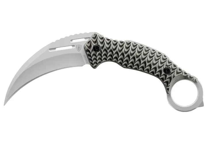 Nóż wykonano z jednego kawałka stali nierdzewnej 420 (konstrukcja full-tang) i wykończono klasyczną techniką satynowania. Zakrzywiona klinga przypominające pazur ma długość aż 100 mm. Na grzbiecie głowni wykonano poprzeczne frezy, które pozwalają na stabilne oparcie palca i lepszą kontrolę noża podczas precyzyjnego cięcia.