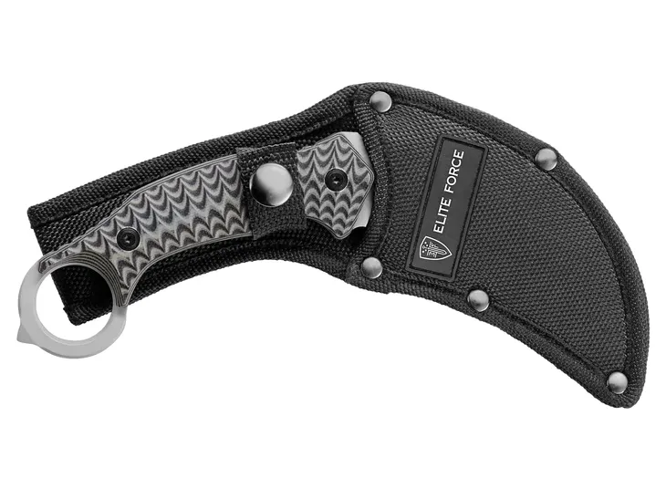 Elite Force EF715 to nóz typu karambit, z głownią ze stali nierdzewnej 420 oraz charakterystycznym pierścieniem umożliwiającym szybką zmianę chwytu.