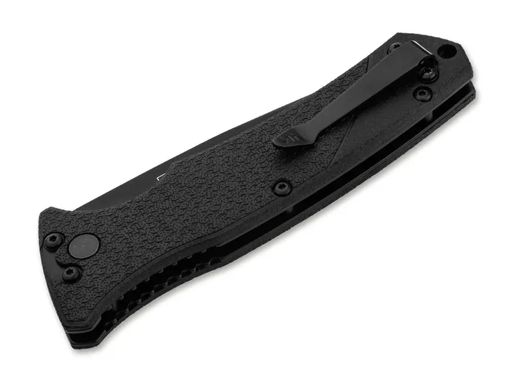 Czarne ostrza ze stali D2 zapewniają doskonałe trzymanie ostrości i trwałość, a stalowe linersy w połączeniu z rękojeściami z nylonu wzmocnionego włóknem szklanym (FRN) gwarantują wytrzymałość bez zbędnego ciężaru. Charakterystyczna faktura chwytu, nawiązująca do pistoletów wojskowych i policyjnych Heckler & Koch, zapewnia bezpieczną kontrolę w każdych warunkach.