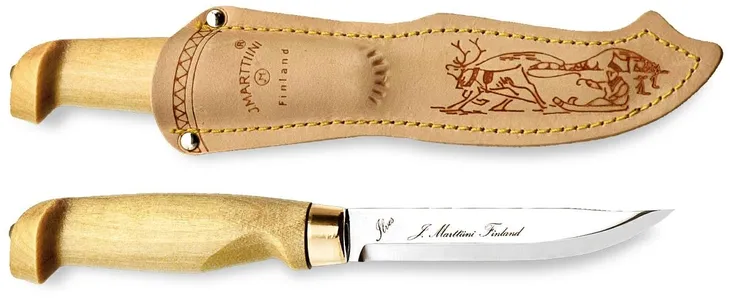MARTTIINI LYNX 129 to standardowych rozmiarów ekstrawagancki nóż o nowoczesnym profilu lakierowanej brzozowej rękojeści. Ostrze ze chromowanej stali nierdzewnej zapewnia ostrość oraz zabezpiecza przed korozją, świetnie sprawdzając się przy pracach codziennych. Nóż zaprojektowano z myślą o kempingu i myślistwie, opatrując go precyzyjnie wyważoną, solidną rękojeścią o wyraźnym profilowaniu na palec - tak, aby zapewnić bezpieczeństwo również podczas trudniejszych wyzwań. Zwieńczenie konstrukcji stanowi stal przy klindze.
