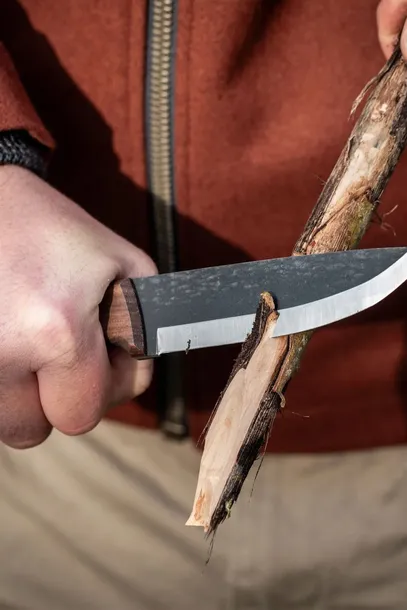 Bushcraftowy nóż Petromax to kwintesencja jakości i tradycji, stworzona dla poszukiwaczy autentycznych przygód survivalowych. Wyprodukowany w Finlandii, stanowi niezastąpione narzędzie dla każdego odkrywcy, łącząc mistrzostwo wykonania z niezawodnością w najtrudniejszych warunkach. Jego wyjątkowe ostrze z najwyższej klasy niemieckiej stali węglowej (80CrV2) gwarantuje niezwykłą trwałość i odporność na uderzenia, czyniąc go idealnym do wszelkich prac w lesie. Ten wybitny nóż bez wysiłku wytrzymuje wstrząsy i duże obciążenia, doskonale sprawdzając się w obróbce drewna, łupaniu mniejszego drewna opałowego oraz precyzyjnym rzeźbieniu. Odpowiedni szlif Scandi pozwala na milimetrową precyzję cięć i jest łatwy do ponownego ostrzenia. Dodatkową stabilność zawdzięcza sklejeniu drewnianej rękojeści ze stalą oraz solidnie zamocowanym aluminiowym nitom, zapewniając niezachwianą przyczepność nawet w najtrudniejszych warunkach. Niezależnie od celu – od tworzenia rozpałki po rzeźbienie czy eksplorację dzikiej przyrody – z nożem Petromax Bushcraft jesteś gotowy na każde wyzwanie. W zestawie znajduje się eleganckie etui z prawdziwej skóry, które bezpiecznie chroni ostrze i umożliwia wygodne noszenie na pasku. Dzięki temu nóż jest zawsze pod ręką i zawsze bezpiecznie schowany, stanowiąc kompletne narzędzie dla każdego miłośnika bushcraftu i survivalu. Najważniejsze funkcje i elementy produktu: • Materiał: Bardzo wysokiej jakości niemiecka stal węglowa 80CrV2 • Ostrze typu Full Tang • Ostrzony w stylu Scandi • Rękojeść: Drewno orzechowe • Powłoka tlenkowa nadaje nożowi wyjątkowy wygląd • Logo Petromax • Wykonany ręcznie • Wyprodukowany w Finlandii • Wymiary: 10,5 x 0,4 cm( dług, grub.) • Waga: 0,4 kg