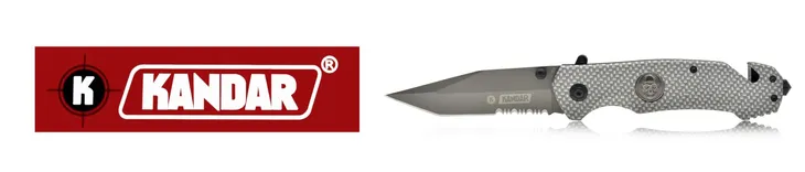 Jak na nóż ratowniczy przystało, KANDAR N-12 wyposażony jest w pokaźny zbijak do szyb (glass breaker) oraz ostrze przeznaczone do cięcia pasów i lin. Ponieważ KANDAR N-12 waży zaledwie nieco ponad 150 g, z powodzeniem może służyć także jako nóż codziennego użytku – EDC (Every Day Carry), który zbytnio nie obciąży kieszeni spodni czy kurtki użytkownika, a więc zawsze może być pod ręką.