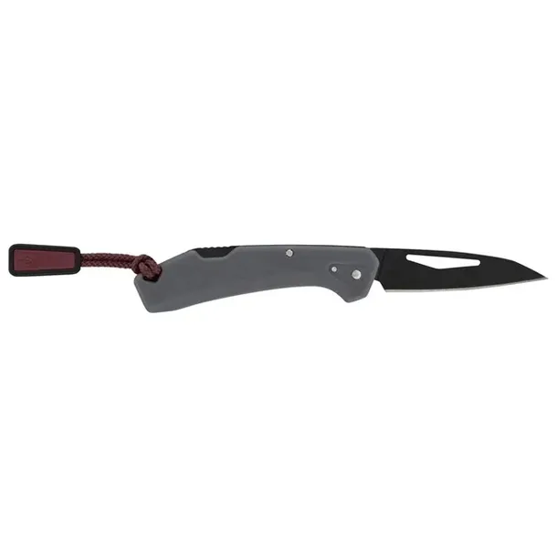 Ostrze Wharncliffe Plain Edge zostało wykonane ze stali nierdzewnej 440A. Podobnie jak oryginał, rękojeść z nylonu wypełnionego włóknem szklanym jest niezwykle lekka i dobrze trzyma się w dłoni. Dodatkowo do noża przyczepiona jest linka z uchwytem.
