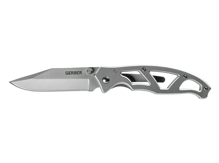Solidna konstrukcja stalowa typu Skeleton, mocny szkielet stanowi jednocześnie chwyt. Frezowane otwory zmniejszają wagę noża i zapewniają lepszy chwyt. Wygodna obsługa noża tylko jedną ręką. Wyprofilowany, dwustronny kołek na grzbiecie głowni pozwala na szybkie rozłożenie noża za pomocą kciuka, dla osób prawo i leworęcznych. Blokada Frame-Lock gwarantuje pewne i bezpieczne ryglowanie klingi. Blokada ma również funkcję zabezpieczającą przed przypadkowym otwarciem noża. Długi klips do mocowania na odzieży lub pasie. Na klipsie zostało wygrawerowane logo GERBER®.