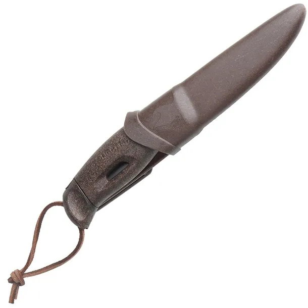 Rękojeść oraz pochwa wykonane są z biotworzywa z domieszką włókna z łupin orzecha kokosowego. Jednostronny jelec gwarantuje pewny chwyt i uniemożliwia ześliźnięcie się ręki na ostrze w trakcie pracy z narzędziem. Pochwa została wyposażona w sprężysty klips, który umożliwia mocowanie na pasie, plecaku lub innych elementach oporządzenia, a w jej dolnej części znajduje się otwór ułatwiający czyszczenie.