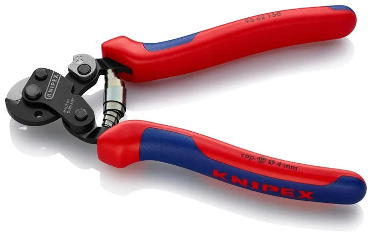 Do wysokowytrzymałych lin stalowych o średn. do 4 mm i kabli o średn. do 6 mm: wyraźnie lżejsze cięcie o wysokiej precyzji dzięki unikatowej konstrukcji złącza zgłoszonej do opatentowania. Kompaktowe rozmiary, niewielka masa, duża wydajność. Wykonane do intensywnego użytkowania: wyjątkowo trwałe i lekkie (172 g). Kompaktowe, lekkie i wydajne. Nawet o 30% mniejszy nakład siły w porównaniu z nożycami do lin stalowych o takiej samej długości. Złącze wtykowe z podwójną prowadnicą zapewnia wysoką stabilność. Ostrza oddzielnie hartowane indukcyjnie, twardość ostrzy ok. 64 HRC. Komfortowa obsługa dzięki sprężynie rozwierającej. do lin stalowych Ø 4,00 / 1960 Nmm².