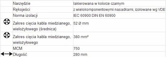 - Do cięcia kabli miedzianych i aluminiowych, jedno- i wielożyłowych