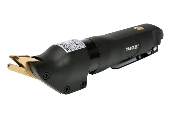 Pneumatyczne nożyce YATO do cięcia blachy, do stosowania m.in. w warsztatach blacharskich.