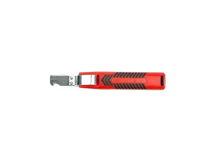 Za pomocą tego noża z łatwością przetniesz wiele rodzajów materiałów. Nożyk posiada ostrze proste do cięcia przewodów, ostrze łukowe do ściągania izolacji oraz docisk i ostrze nacinające zewnętrzną izolację kabla na jego obwodzie, ostrze to posiada regulację głębokości cięcia i regulację naciągu ostrza.