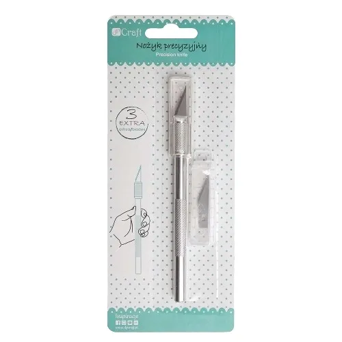 Praktyczny i funkcjonalny nożyk do precyzyjnego wycinania wykonany z materiałów nierdzewnych. To niezastąpione narzędzie we wszystkich technikach wymagających precyzyjnego cięcia. Świetnie sprawdzi się w cardmakingu, scrapbookingu, decoupage, modelarstwie