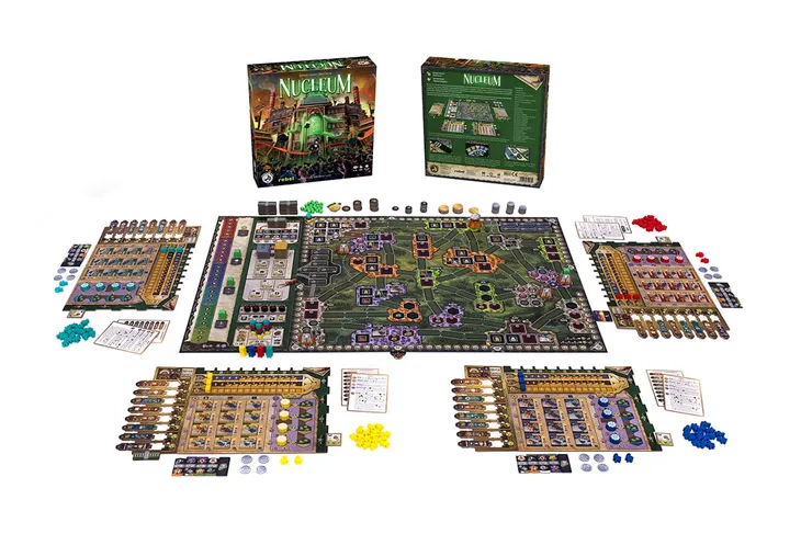 Nucleum jest złożoną grą o rozbudowie sieci przemysłowych wymagającą planowania i reagowania na dynamicznie zmieniającą się sytuację na mapie. W każdej turze gracz zagrywa płytkę akcji na swoją planszę albo na mapę, albo przeprowadza doładowanie. Łącz miasta, aby stawiać i zasilać budynki za pomocą nucleum oraz uranu z wybudowanych przez siebie kopalni. Wypełniaj kontrakty i wynajduj nowe technologie, prowadząc swoją wyjątkową frakcję do sukcesu i zaspokajając ambicje króla. Zostań najlepszym przemysłowcem w nowej erze!