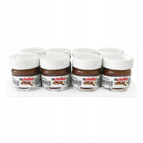 Krem do smarowania z orzechami laskowymi i kakao Nutella w mini słoiczku 25g. Idealnie nadające się porcje do śniadań hotelowych, restauracyjnych, biur czy cateringu. Są higieniczne i redukują plastik przez zastosowanie szklanego słoiczka.