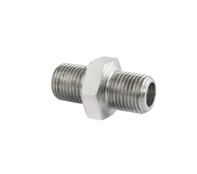 Łącznik - nypel wykonany z mosiądzu niklowanego.
