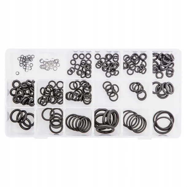- Zestaw zawiera: O-ringi NBR: 20 x (3 x 1 mm), 20 x (4 x 1 mm), 20 x (4.5 x 2 mm), 20 x (5 x 2 mm), 20 x (6 x 2 mm), 20 x (6 x 2.5 mm), 20 x (6 x 3 mm), 20 x (7 x 2 mm), 20 x (8 x 2 mm)