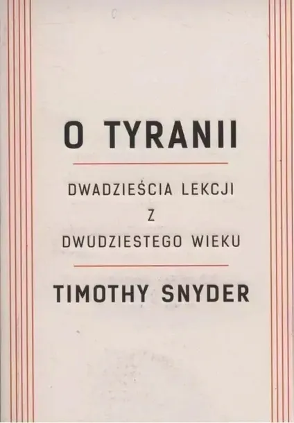 Porywający esej wybitnego znawcy historii Europy Środkowej i Wschodniej napisany po zwycięstwie wyborczym Donalda Trumpa. Timothy Snyder analizując zwycięski pochód populizmu w USA i wielu krajach Starego Kontynentu odwołuje się do tragicznych doświadczeń Europejczyków w XX wieku stuleciu naznaczonym krwawym panowaniem nacjonalizmu, faszyzmu i komunizmu.