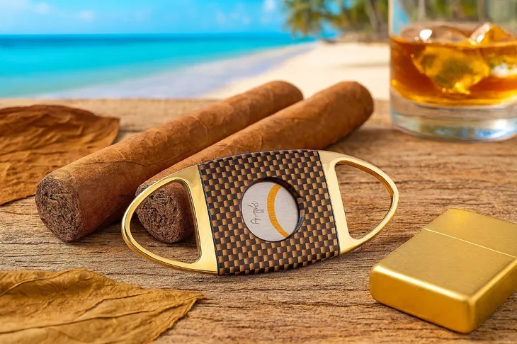 Obcinarka do cygar marki Angelo. Posiada dwa ostrza.