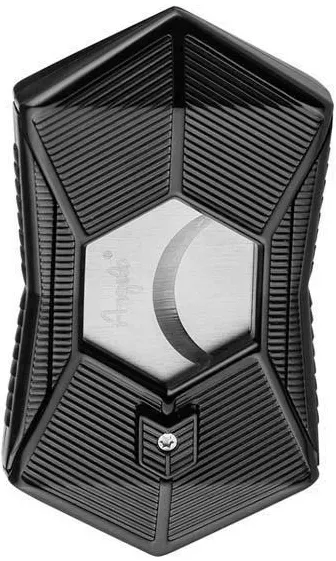 Obcinarka do cygar z dwoma ostrzami w czarnym kolorze. Zapakowana w eleganckie pudełko prezentowe.