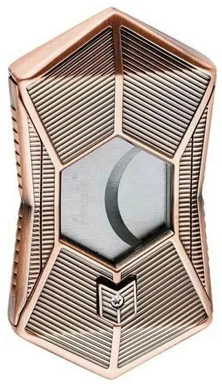 Obcinarka do cygar z dwoma ostrzami w miedzianym kolorze. Zapakowana w eleganckie pudełko prezentowe.