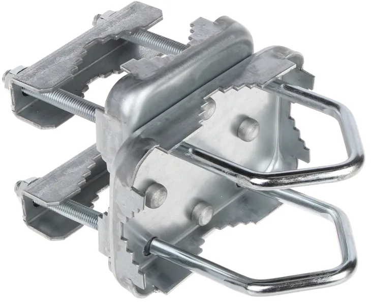 Obejma ze wzmocnionym profilem. Obejma do przymocowania masztów pod kątem prostym. Istnieje też możliwość mocowania masztów równolegle (przedłużenie masztu).