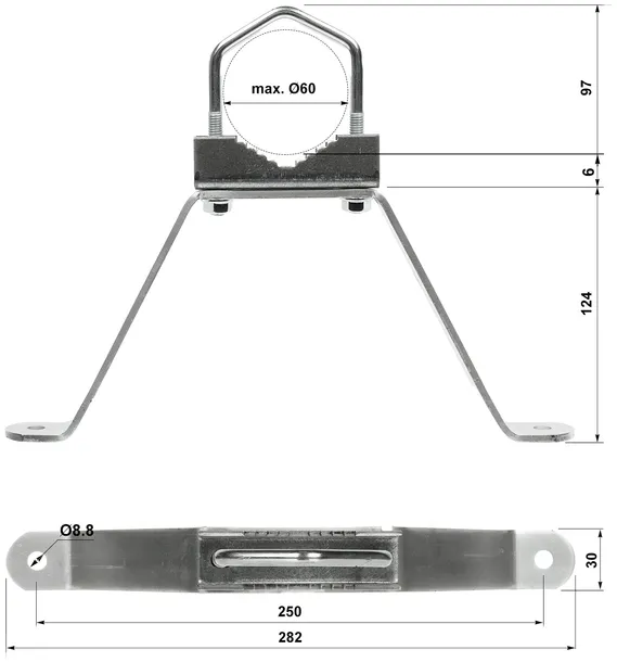 Obejma murowa służy do zamocowania masztów antenowych do muru. W komplecie znajdują się dwa elementy.