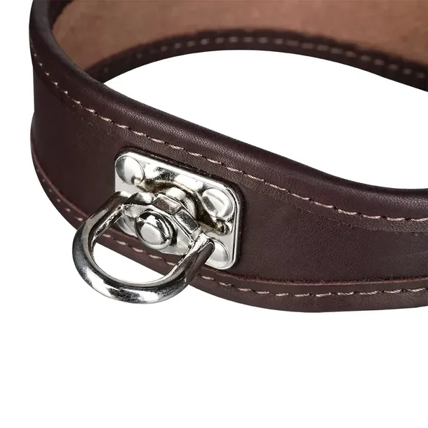 Mocna obroża wyprodukowana z naturalnej skóry hydrofobowej o szerokości 50 mm. Zakończona została klamrą typu Premium oraz krętlikiem umożliwiającym zaczepienie smyczy i ułatwiającym pracę z naszym zwierzęciem. Obroża posiada dodatkową, skórzaną szlufkę, która ma zapobiegać odstawaniu paska.