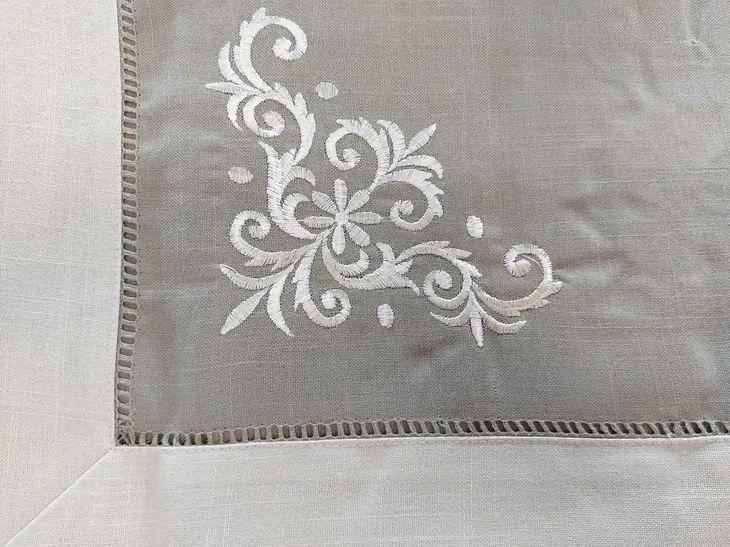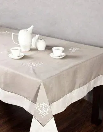 Obrus ozdobiony gustownym haftem. Utrzymany w rustykalnym stylu. 100% poliester