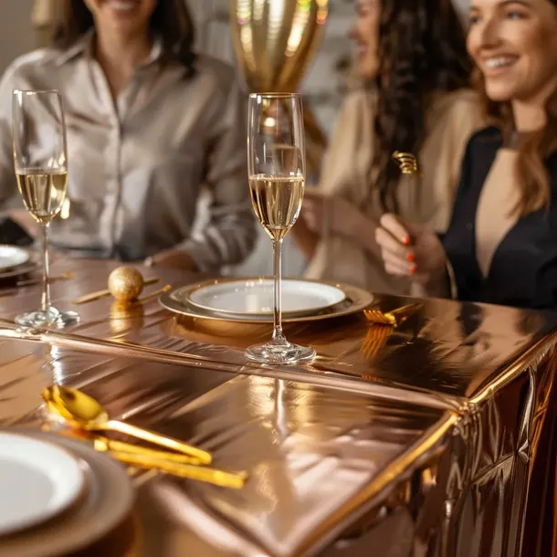 Dzięki swojej elegancji i subtelnemu połyskowi, obrus lustrzane złoto doskonale sprawdzi się na różnorodnych przyjęciach. Bez względu na to, czy organizujesz formalne przyjęcie urodzinowe, romantyczną kolację czy letni garden party, nasz obrus będzie niezawodnym wyborem.