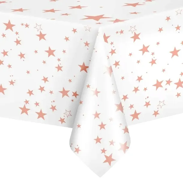Obrus urodzinowy BIAŁY w gwiazdki ROSE GOLD 137 CM X 274 CM