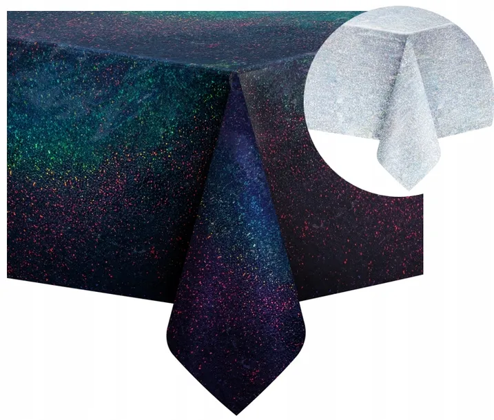 OBRUS JEDNORAZOWY HOLOGRAFICZNY DWUSTRONNY CZARNY SREBRNY PARTY 137x274cm